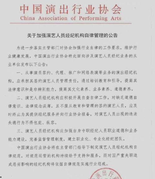 娱乐圈演绎公告,让我们看到了明星们背后的故事。他们为了追求梦想,付出了巨大的努力。在光鲜亮丽的背后,他们也有着自己的喜怒哀乐。正是这些故事,让我们更加了解娱乐圈,更加尊重这些为梦想拼搏的明星们。希望这篇文章能让你对娱乐圈有更深入的了解,也祝愿每一位明星都能在演艺事业上取得更好的成绩!